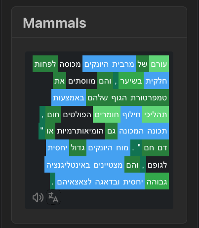With yamilaa, you can explore interesting and culturally relevant practice texts in the languages you're learning. The yamilaa system uses Natural Language Processing (NLP) to parse each text, find all word inflections, and analyze grammatical features. For example, the verb “to run” includes forms like “running,” “ran,” and “runs.” You can also upload your own practice texts. The system will automatically analyze them, and you can share them with others, so a teacher can share documents with their class. We currently source documents from major news outlets, song lyrics, culturally relevant Wikipedia articles, and subtitles from TV shows and movies. Right now, we support Arabic and Hebrew. We're working on adding Greek, with more languages to come.