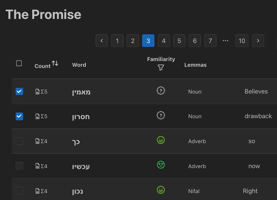 Create your own custom word collections, or use auto-generated ones built from your documents and folders. These collections are sorted and filtered by word frequency within the document or based on frequency in various language sources like news, subtitles, and songs.